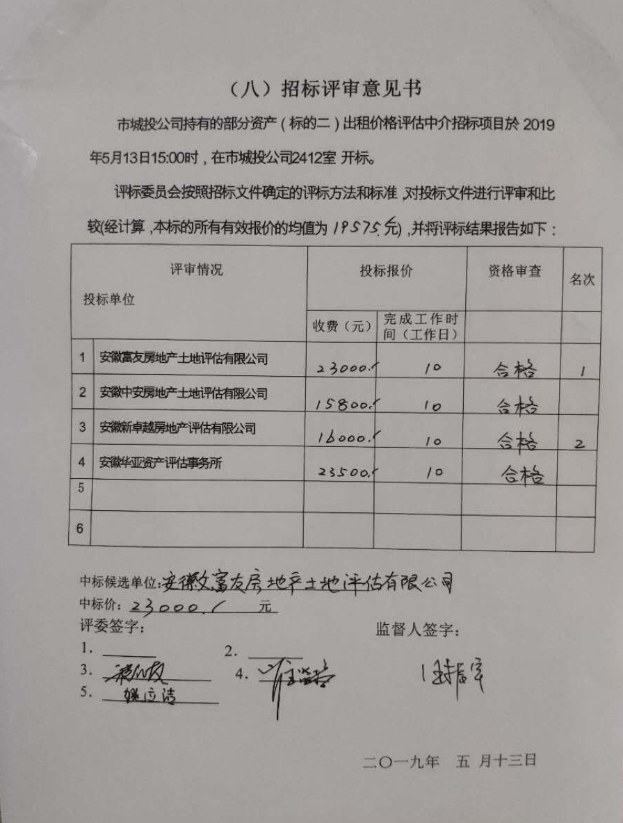 市城投公司持有的部分資產(chǎn)(標的二)出租價格評估中介招標項目結(jié)果公示