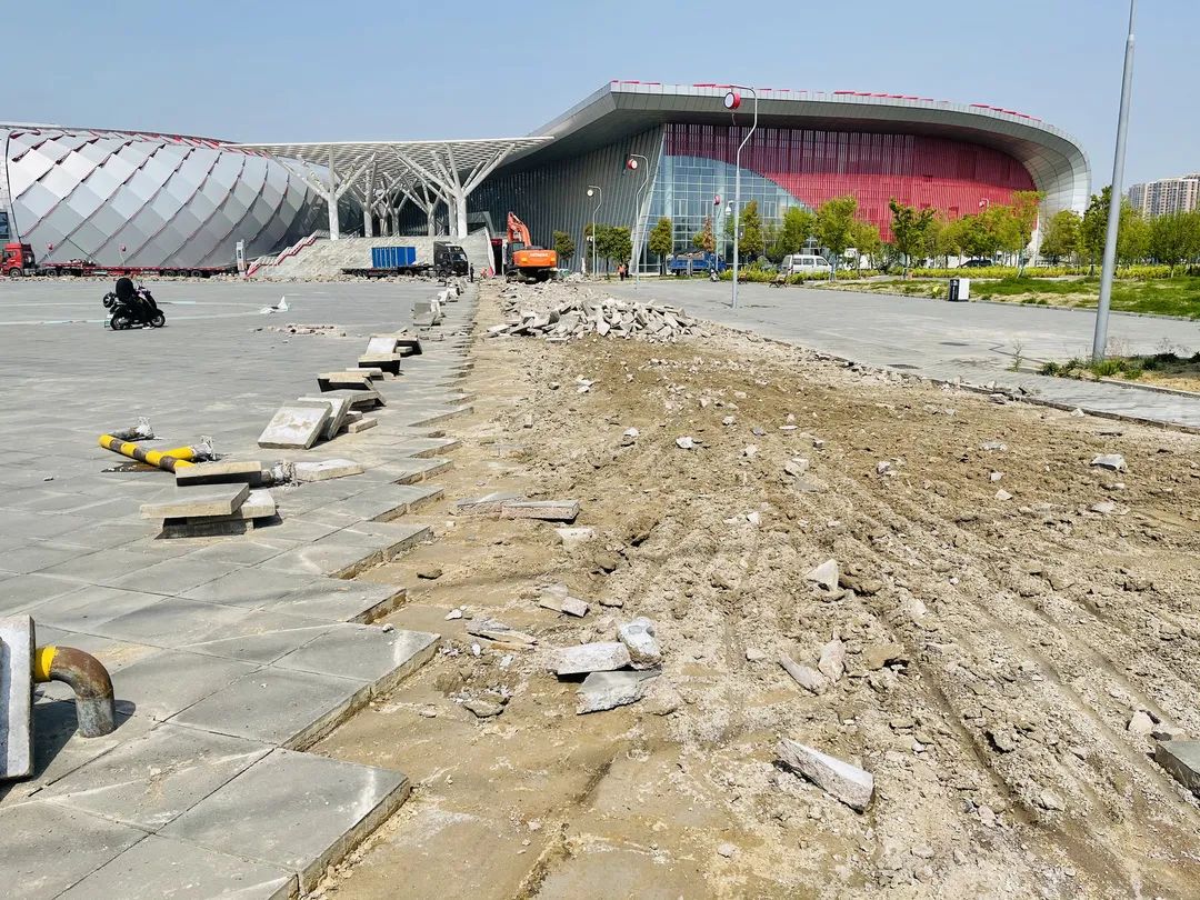 沿著體育中心的外圍入口,板房的框架已經(jīng)初見規(guī)模,地下開挖的管槽已經(jīng)鋪設(shè)好管道。負(fù)責(zé)該項(xiàng)工作的市城投公司副總經(jīng)理?xiàng)钌晋椊榻B,場(chǎng)外有4個(gè)臨時(shí)構(gòu)筑物,包括入院通道、出院通道、醫(yī)護(hù)人員消殺通道、洗浴間、廁所,總建筑面積達(dá)2000平方米。