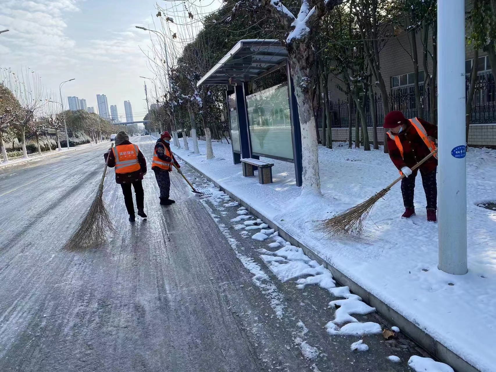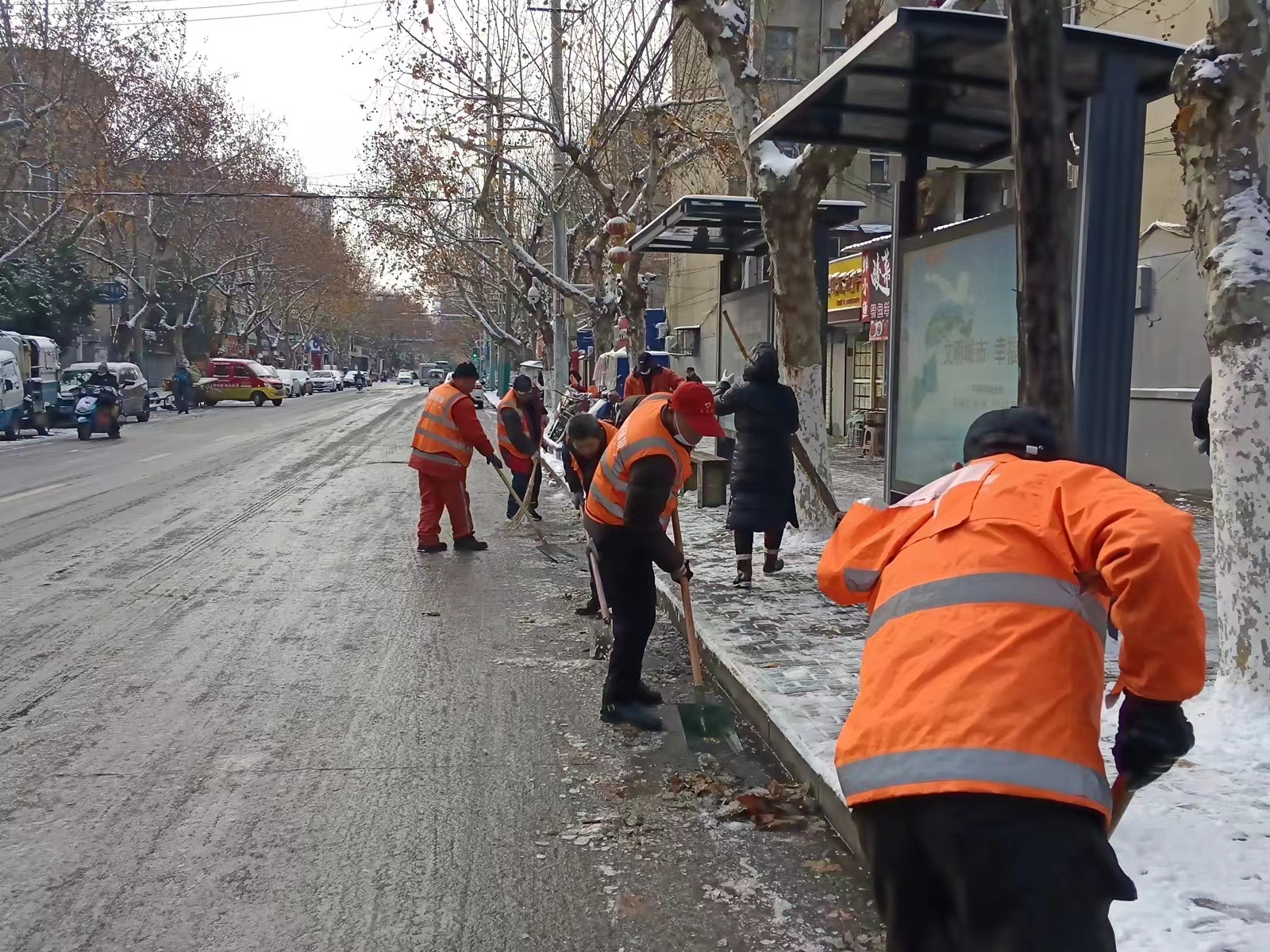 次日上午,城啟環(huán)衛(wèi)搶抓氣溫回升及撒播融雪劑后的有利條件,全員上路加強保潔,在重點路段重點區(qū)域?qū)嵤┤斯ょP雪除冰作業(yè)。截至上午9點30分,城區(qū)主要干道通行順暢;城啟環(huán)衛(wèi)則已開始對次干道及背街小巷進行延伸作業(yè)。