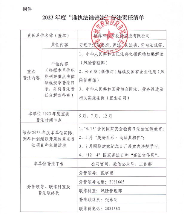 2023年度“誰執(zhí)法誰普法”普法責(zé)任清單