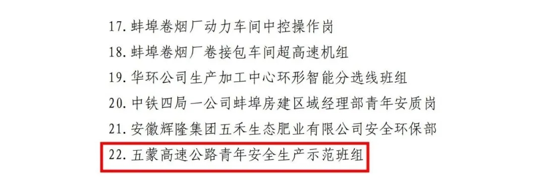 近日,共青團蚌埠市委印發(fā)《關(guān)于命名2023年度蚌埠市“號手崗位”的決定》(蚌青〔2024〕10號)經(jīng)嚴格審核、擇優(yōu)選拔,蚌埠城投康養(yǎng)公司榮獲2023年度蚌埠市“青年文明號”稱號 蚌埠城投五蒙高速公司榮獲2023年度蚌埠市“青年安全生產(chǎn)示范崗”稱號 蚌埠城投建工公司榮獲2023年度...