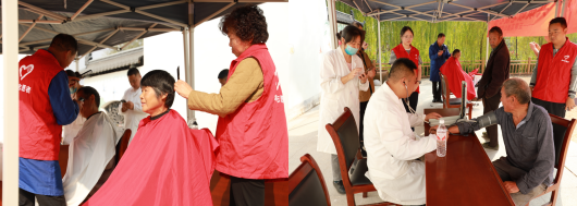 現(xiàn)場專設(shè)健康義診、免費(fèi)理發(fā)、反詐宣傳等志愿活動(dòng),為老人提供耐心細(xì)致的服務(wù)。金秋暖陽下,城投五蒙高速黨支部黨員也紛紛向老人們致以節(jié)日的問候和祝福。